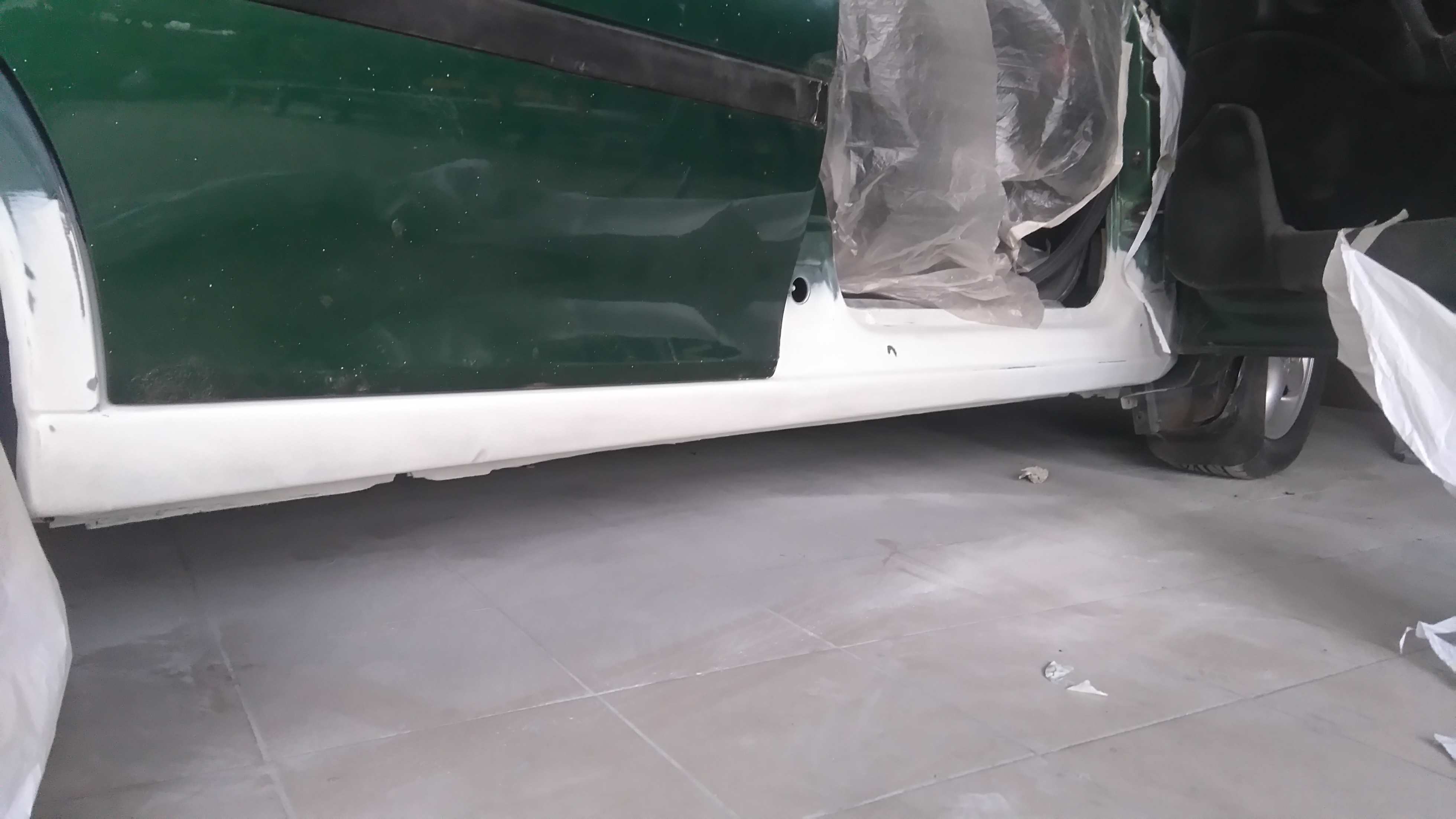 Перед покраской на порог наносим антигравийное покрытие, которое защитит порог от попадания камней из под колес автомобиля.